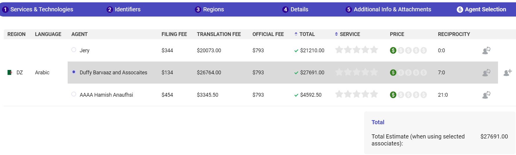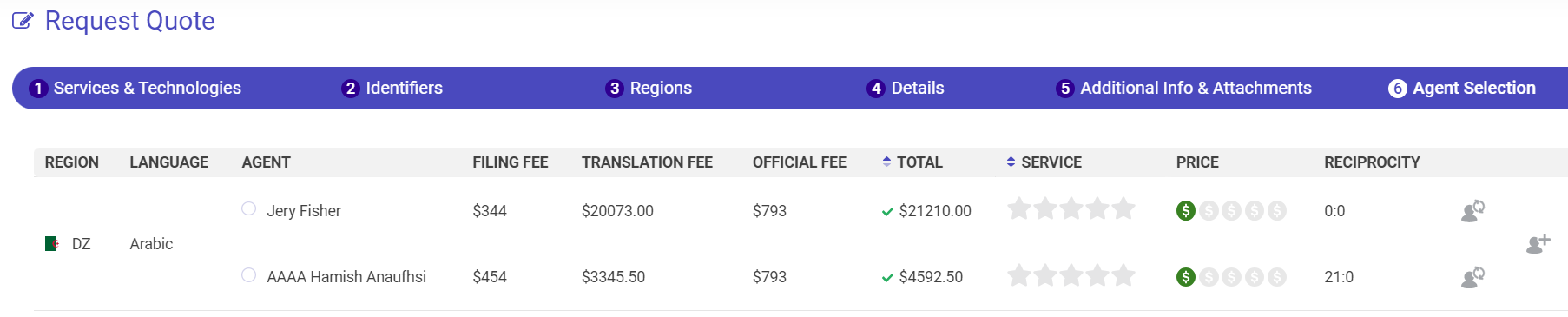 4. Your inactive agents will be hidden on the agent selection screen in the Quote Builder: