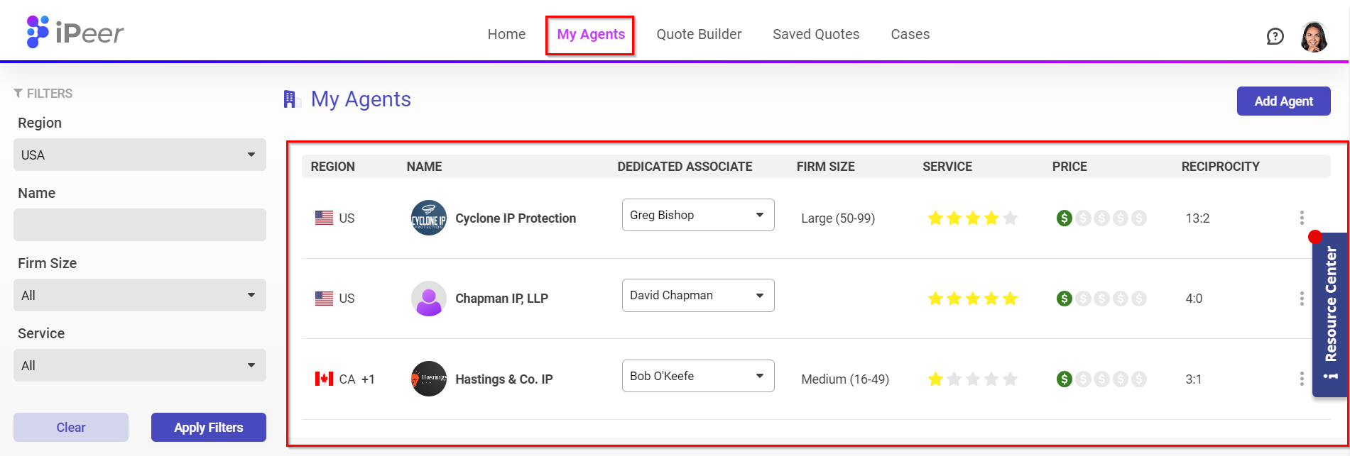 To update your agent’s rates, click on the desired agent firm’s name in your agent list.