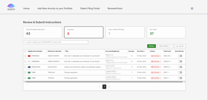 Clicking on any of these tabs automatically filters the renewal list to show only the relevant items.